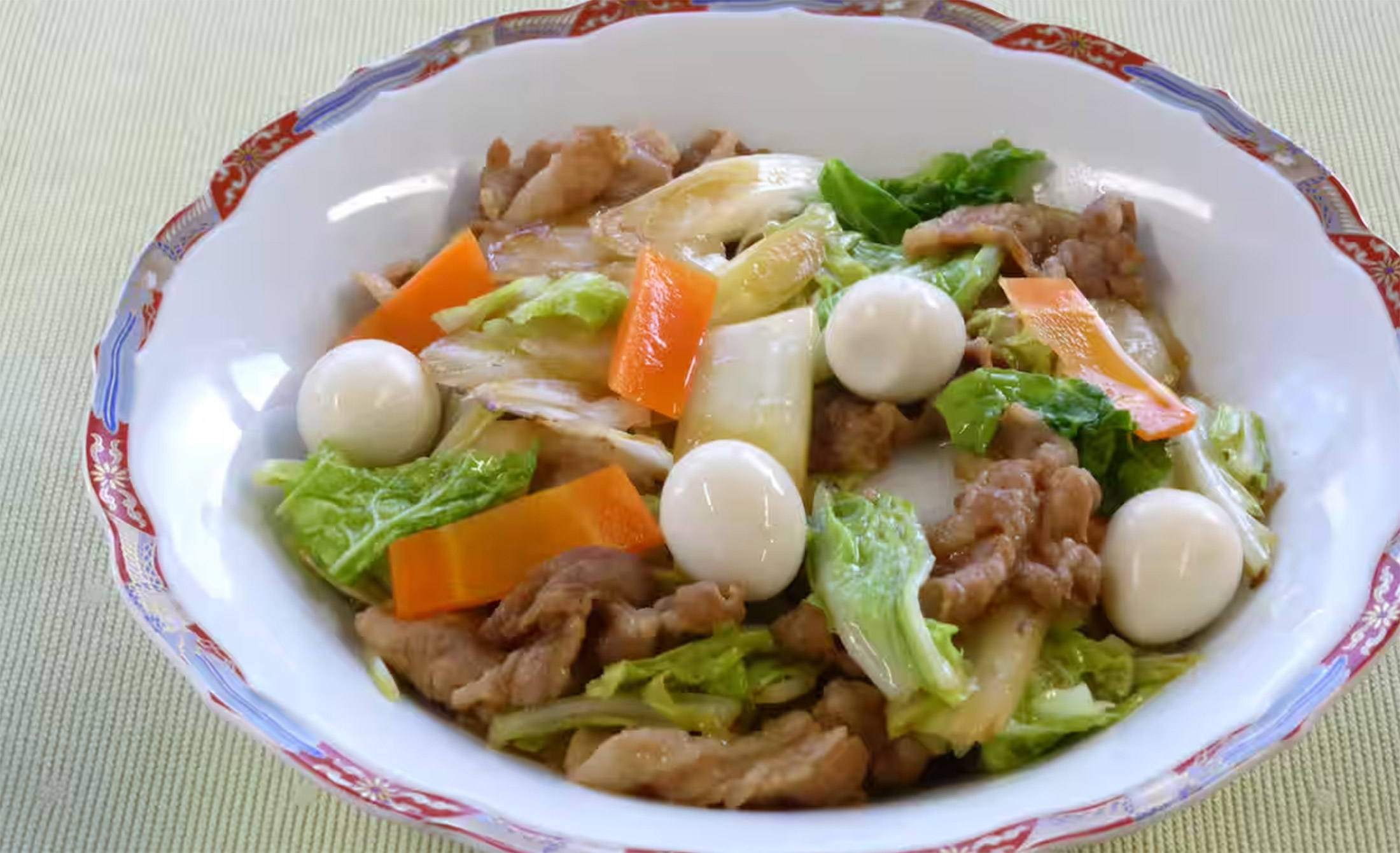 うま煮は彩りのいい一品に仕上がりました。食べてみると、何とも味わい深く、箸が進みます。白菜の芯のシャキシャキとした食感も心地いいですね。ママは、「軽くとろみがついて冷めにくいのも、寒い時期にはうれしいわ。材料は同じでも鍋料理とは違うおいしさね」。