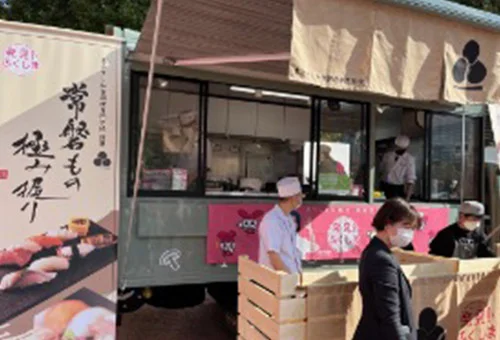 「東京すし和食調理専門学校」が大型キッチンカーで出店し、未来の職人を目指す生徒たちが、来場者の目の前で丁寧に心を込めて握った寿司を提供します。同校は和食に特化した唯一の認可専門学校。70%が実習というカリキュラムで磨いた技を披露。肉厚のヒラメや身の引き締まった寒サワラ、ふっくらと炊き上げたアナゴなど、常磐沖で水揚げされた、この時期が旬の魚を中心に全部で8貫が楽しめます。
