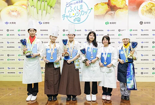 ふくしまスイーツフェスティバルは、スイーツの力で福島の復興を応援することを目的に開催。大熊町のキウイ、富岡町のパッションフルーツ、楢葉町のサツマイモ、広野町のバナナをそれぞれ使った4種類のスイーツが味わえます。スイーツは、昨年8月に福島県のJヴィレッジで開かれた各町特産品を使ったスイーツ作りのコンテスト「スイーツ甲子園ふくしまチャレンジカップ」で、各町賞に輝いた高校生4組と審査員の著名パティシエが考案しました。