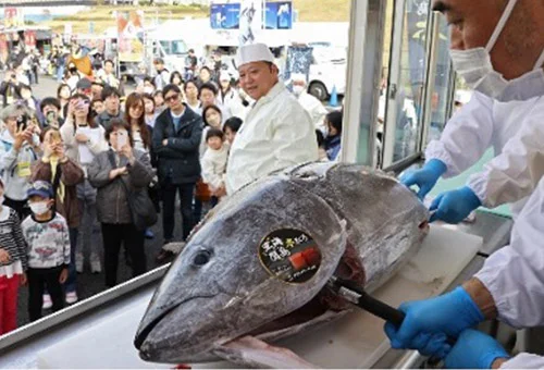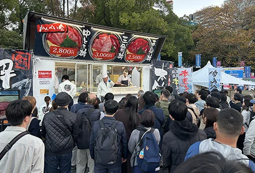 魚のプロの「豊洲かんぺい会」ブースでは、玄界灘の長崎・鷹島で育てられた「生本マグロ」を厳選して直送し、来場者の目の前で「解体ショー」を毎日開催します。さばいたばかりの超新鮮なマグロの味わいは格別です。赤身、中トロ、大トロを食べ比べられる「大とろ入り本まぐろ三色丼」などを提供します。