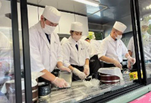 「東京すし和食調理専門学校」が大型キッチンカーで出店し、未来の職人を目指す生徒たちが、来場者の目の前で丁寧に心を込めて握った寿司を提供します。同校は和食に特化した唯一の認可専門学校。70%が実習というカリキュラムで磨いた技を披露。肉厚のヒラメや、ふっくらと炊き上げたアナゴなど、常磐沖で水揚げされた、この時期が旬の魚を中心に全部で8貫が楽しめます。