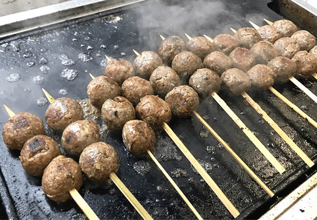 サンマのすり身にミソとネギやショウガの薬味を混ぜてお団子にした福島・小名浜の漁師飯。船上で漁師が炭火で焼くと脂が滴り落ち、ポーポーと音をたてたのが由来。